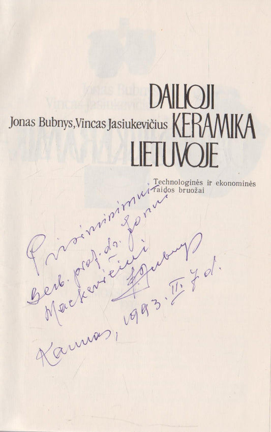 Jonas Bubnys - Dailioji keramika Lietuvoje (su aut. dedikacija)