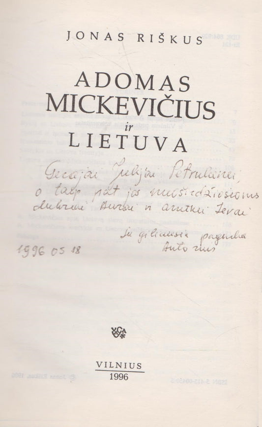 Jonas Riškus - Adomas Mickevičius ir Lietuva (su. aut. autografu)